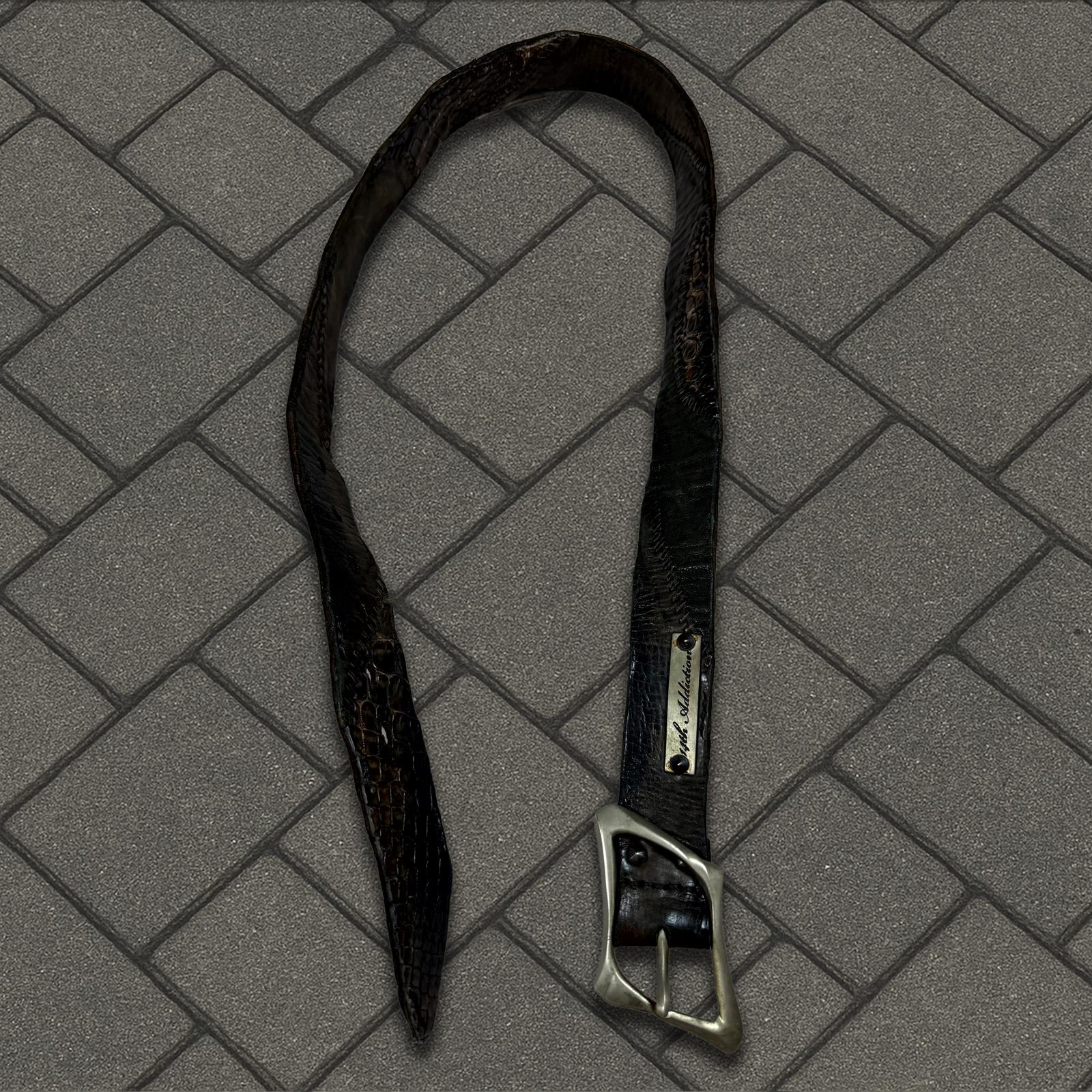14th Addiction Scar Stitch Crocodile Leather Belt