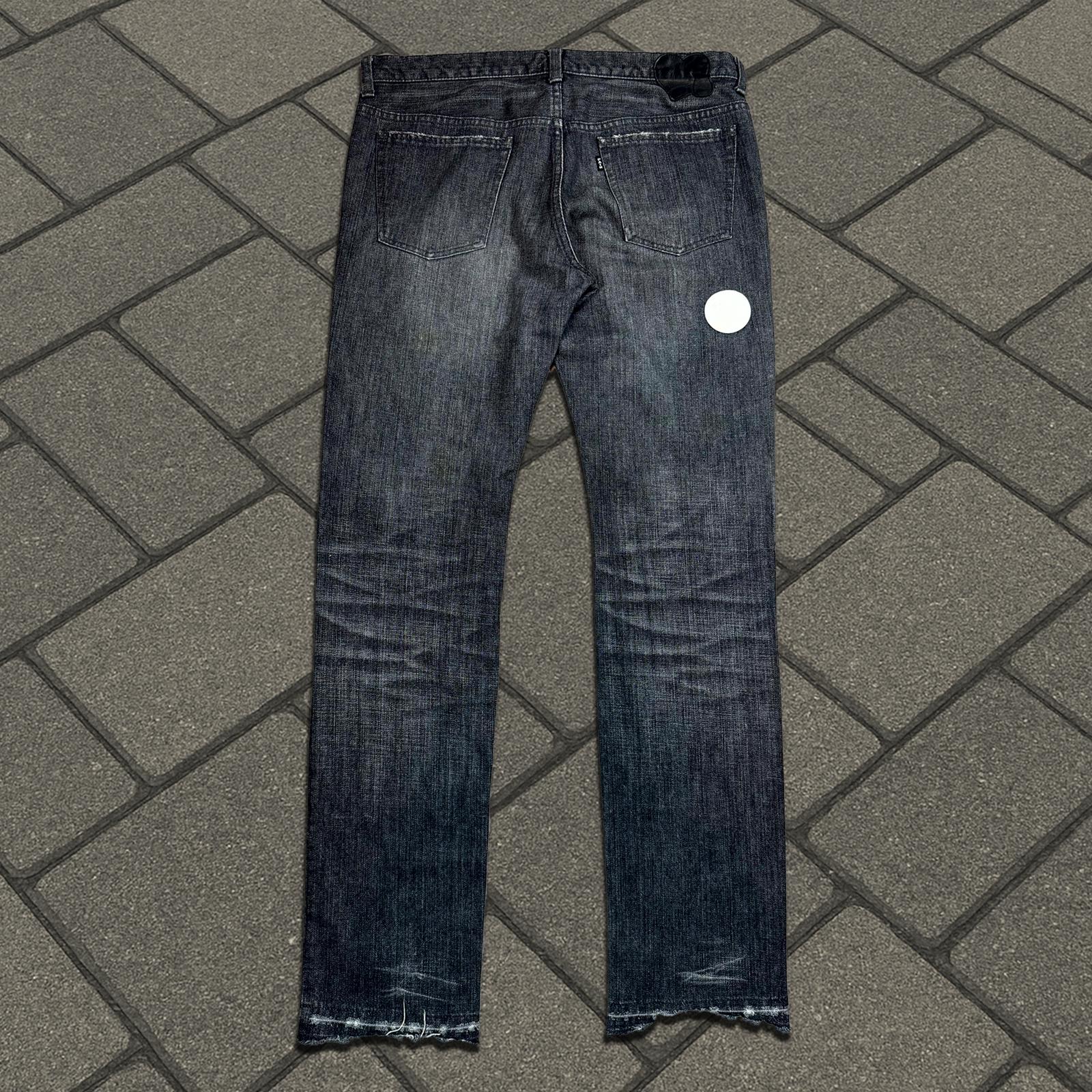 This pair of pain denim from Number Nine’s 2004 collection features patches with different slogans from the runway. Some use visible on patches, otherwise great condition.
