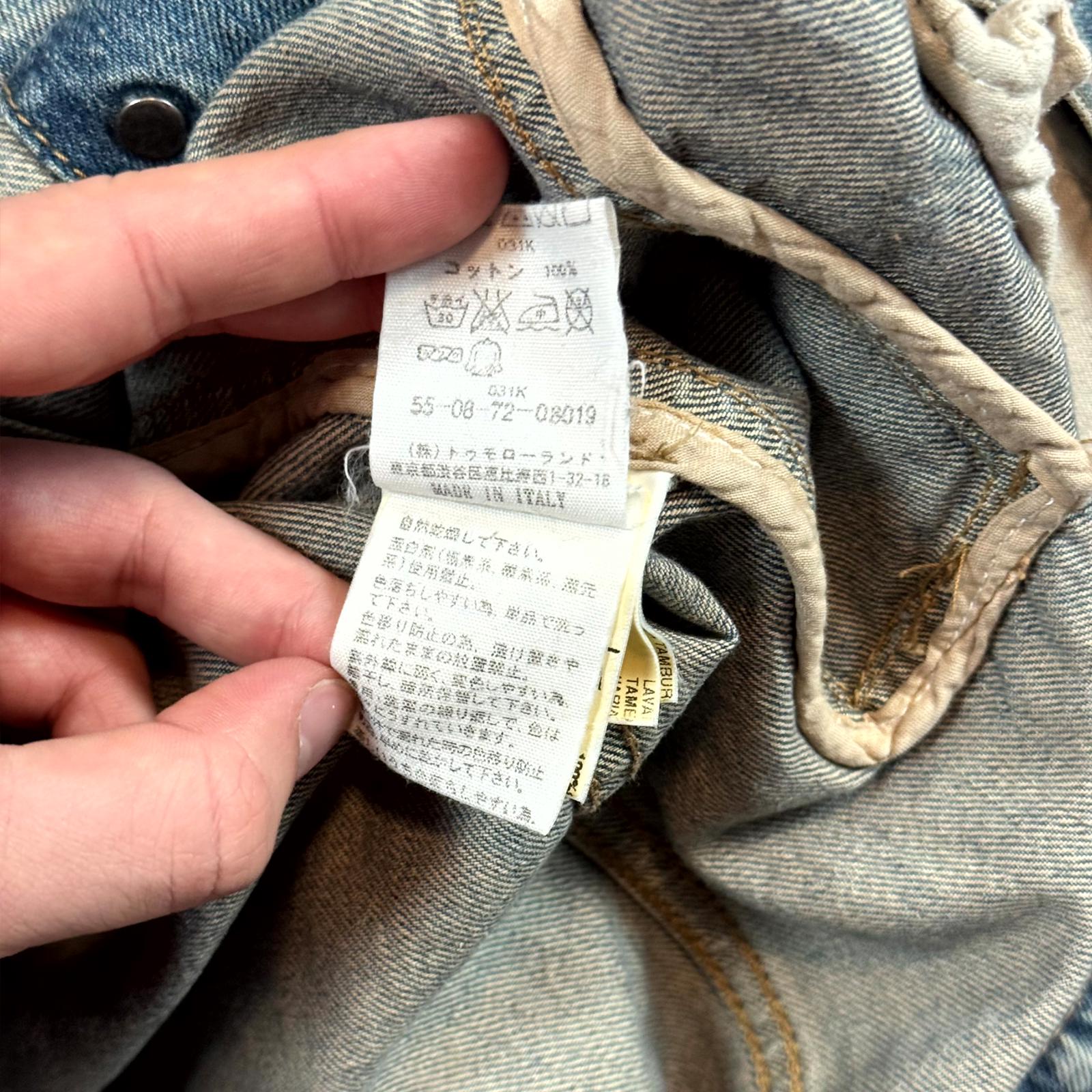This denim jacket from Rick Owens golden era was produced by Olmar & Mirta. Has a very nice sand/mud wash and no major flaws.
