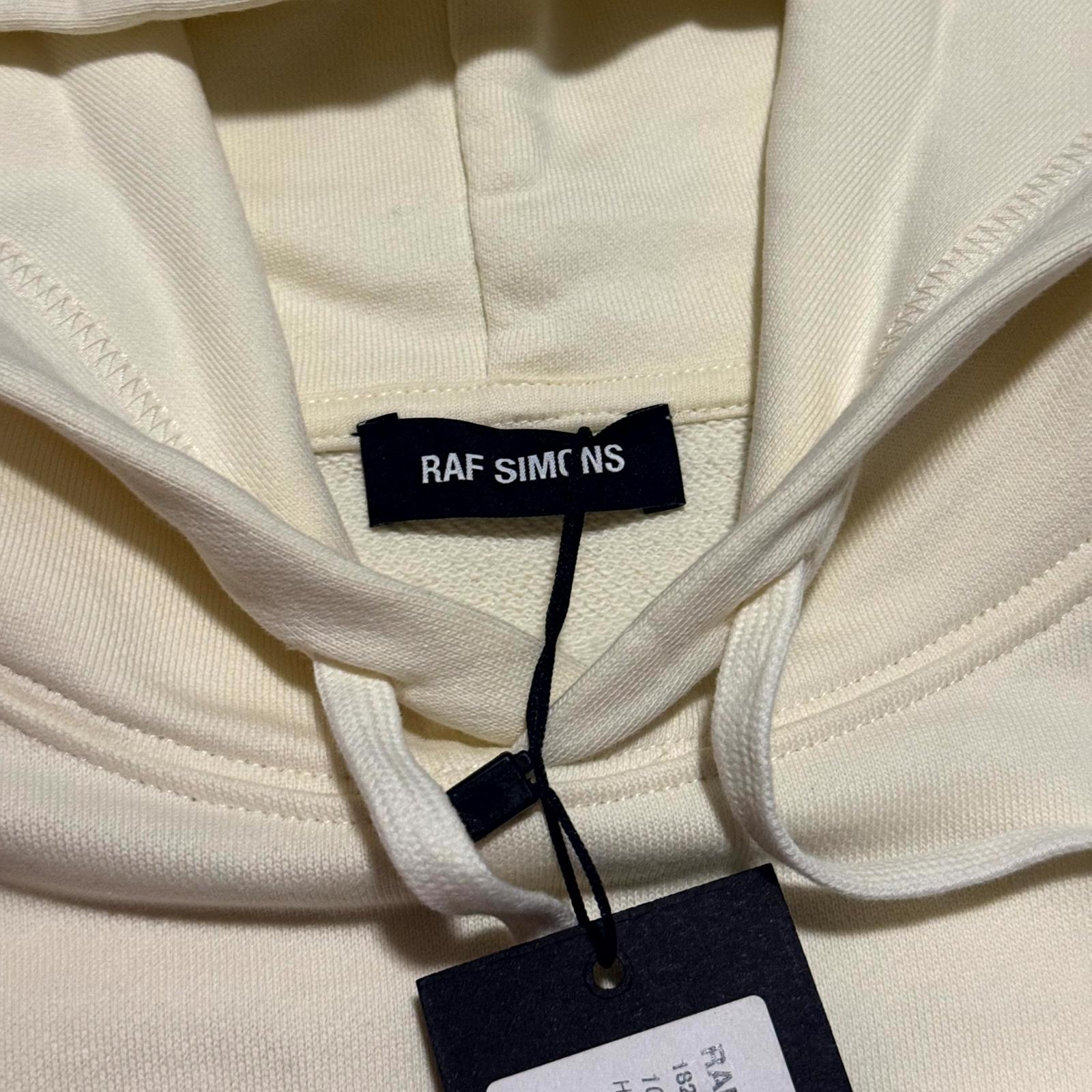 This hoodie from Raf Simons more recent years features removable sleeve covers that can be styled in many different ways. Comes with tags.