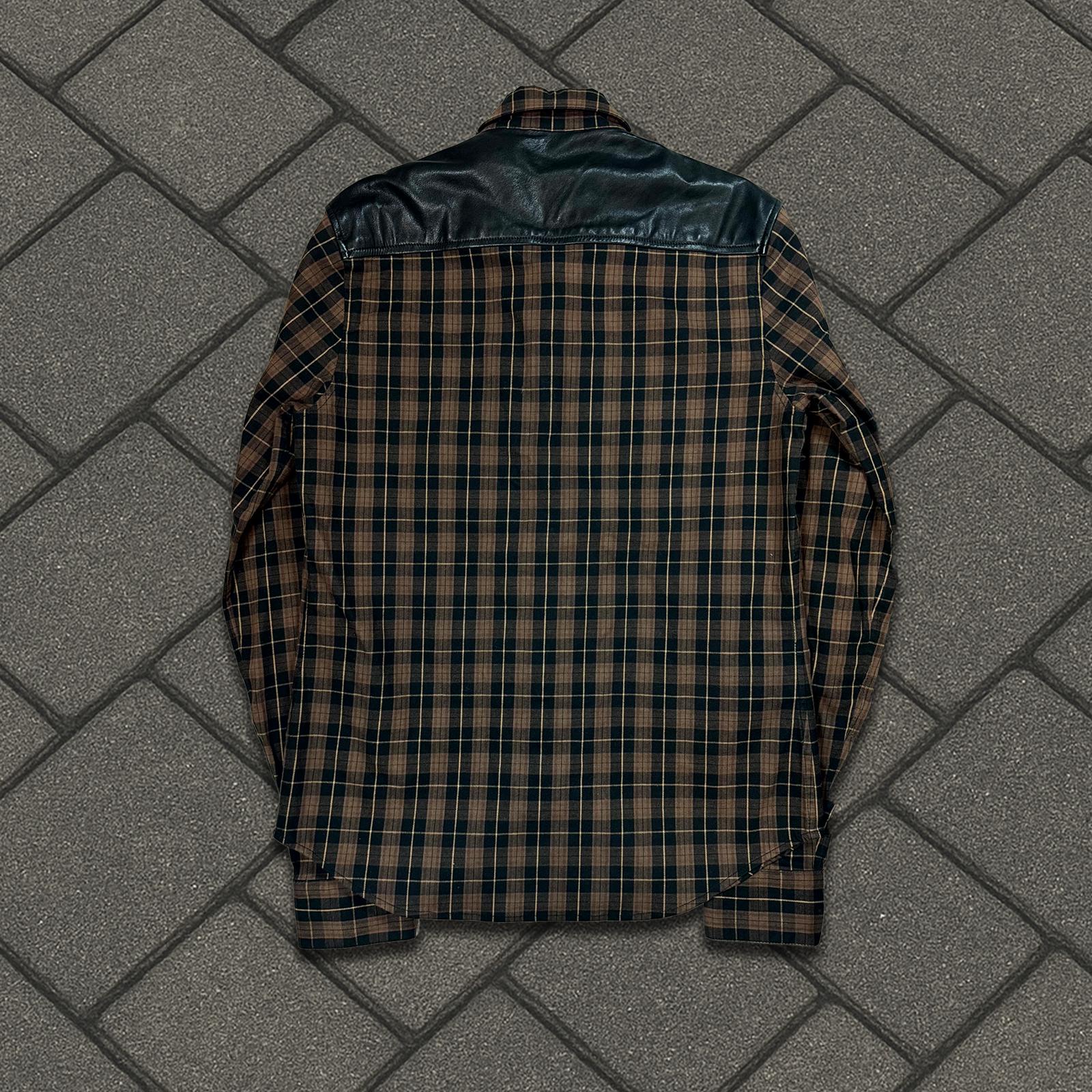 This flannel from Chrome Hearts features soft lamb leather accents and 2 cross patches. Immaculate condition.