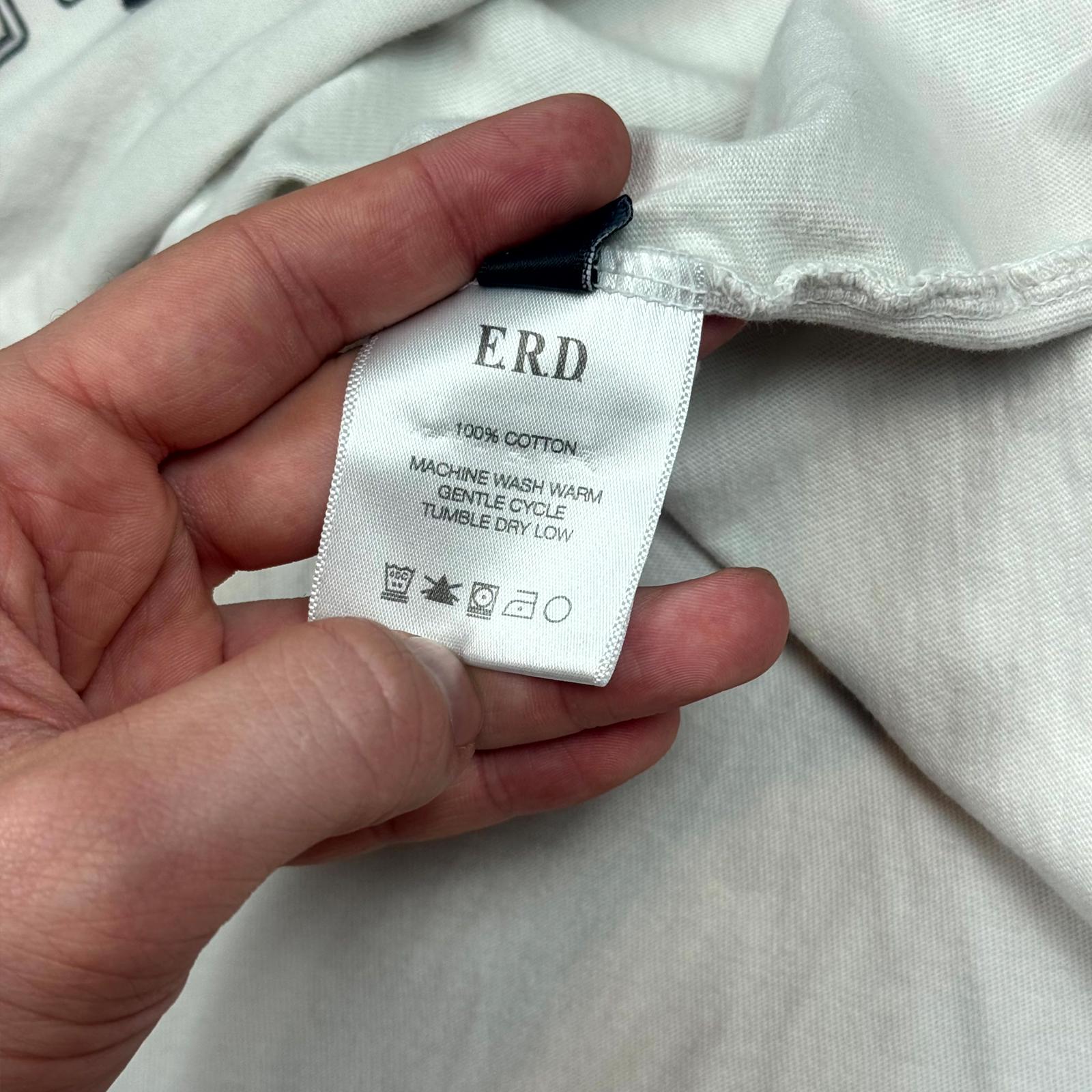 This longsleeve from ERD has a slick graphic on the front and a unique fit with elongated sleeves. It is used with some discoloration but overall alot of life left. Took me awhile to find this one lol.