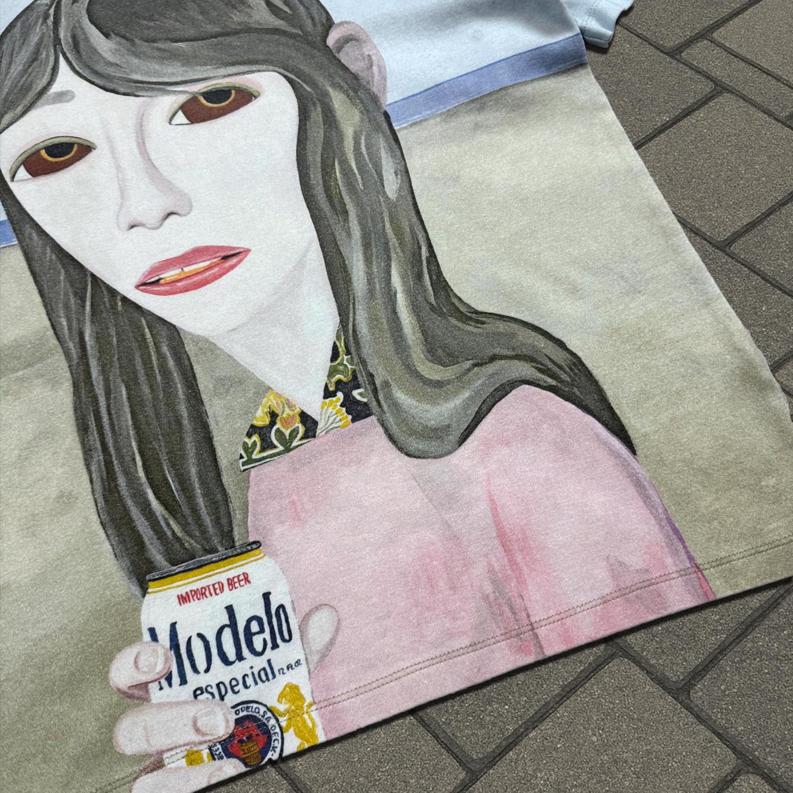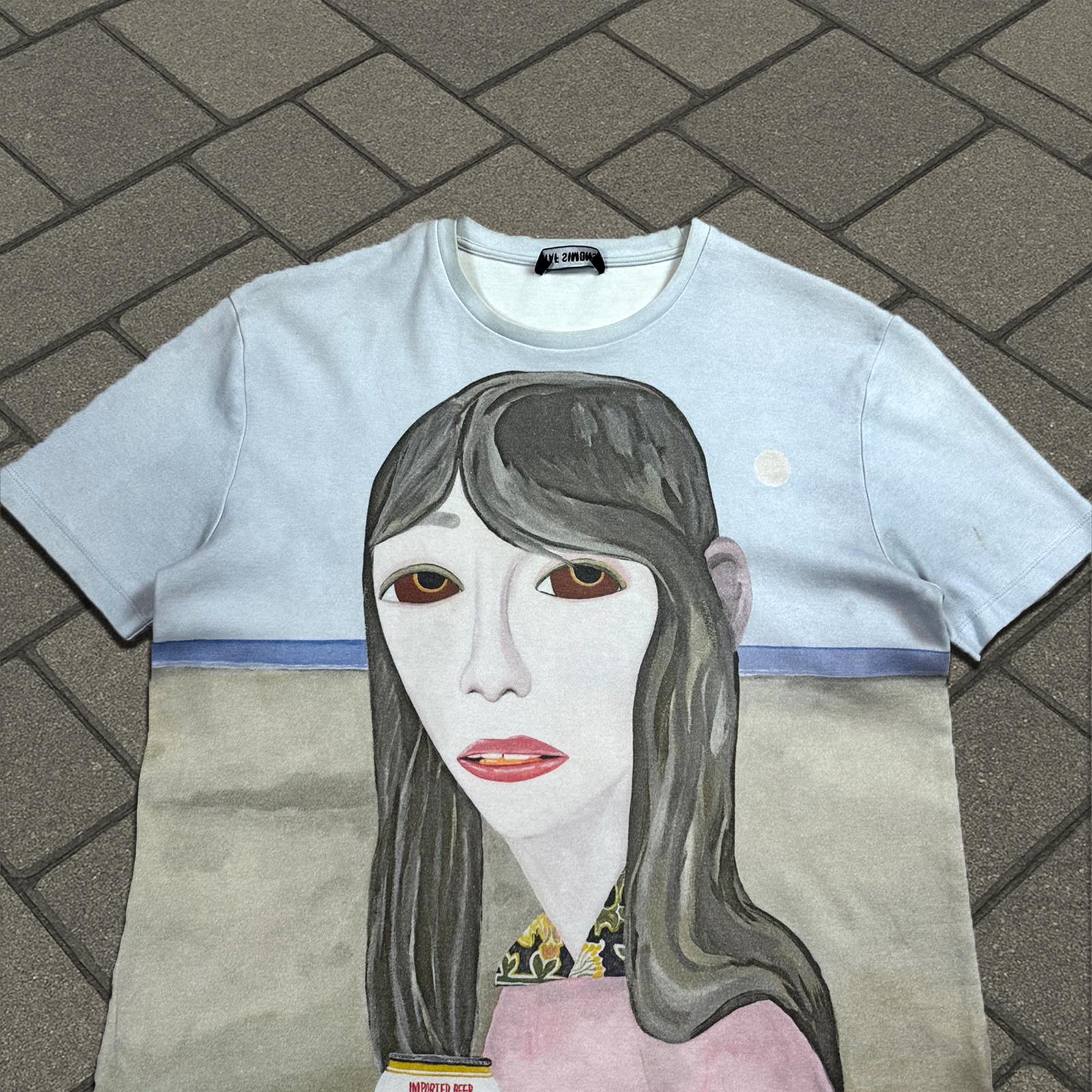 This tee shirt from Raf Simons aand artist Brian Calvin's iconic collab features aa print of Brian Calvin's 'Alta California' painting. It is almost impossible to find today and is in very high demand, worn by Osamason. Used , small mark but nothing major. From my personal collection one of my favorites.