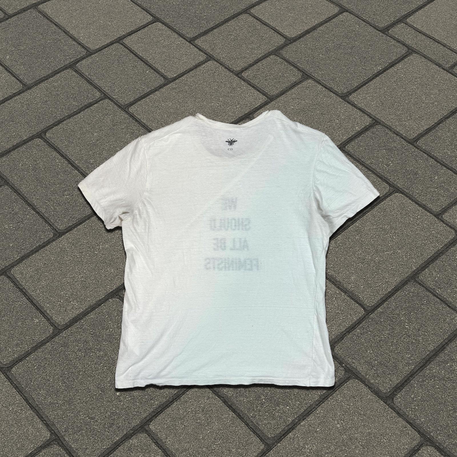 This iconic tee from Dior’s SS18 collection was featured alongside other tees with feminist slogans. Used, light yellowing.