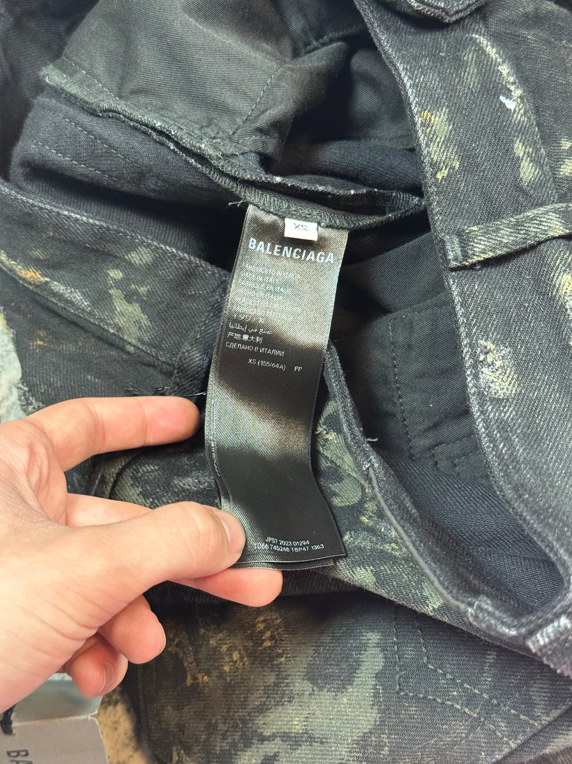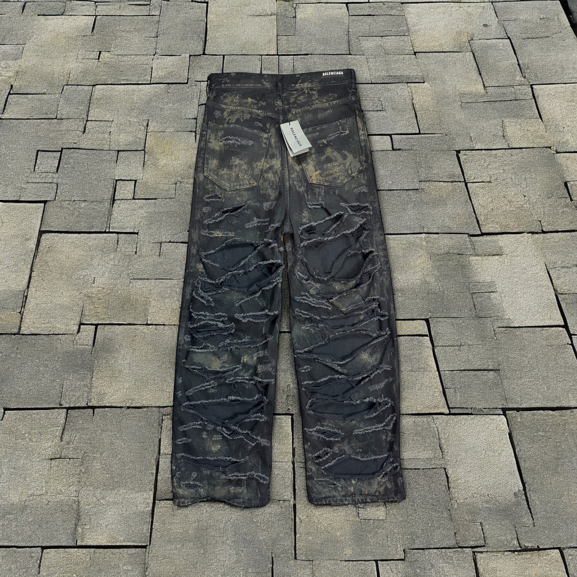Insane looking pair of jeans, another piece to show the insane run denma gvasalia had with balenciaga and making it stand out as much as possible, featuring lots of mud and intentional rips on the back of the jeans revealing the back of your legs.