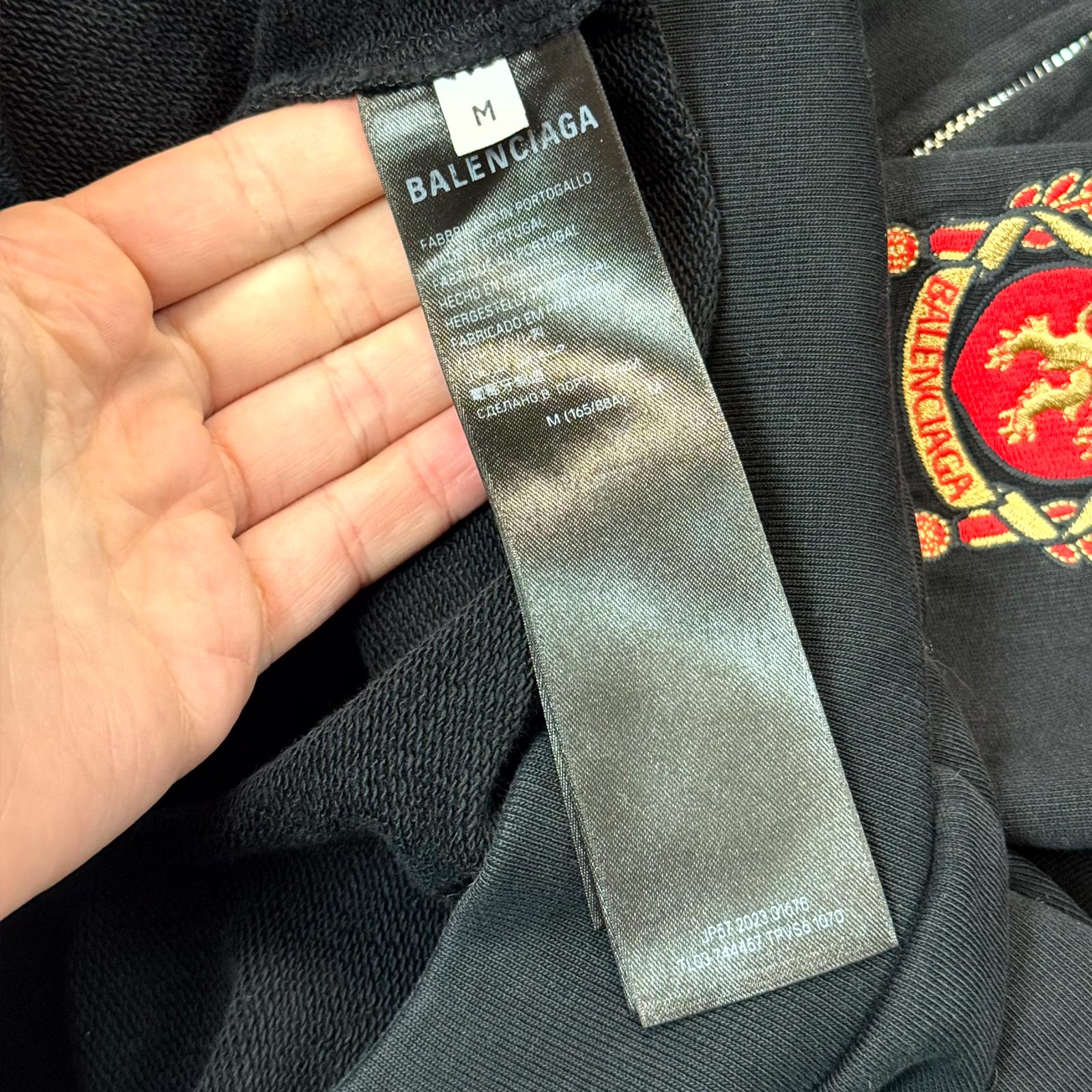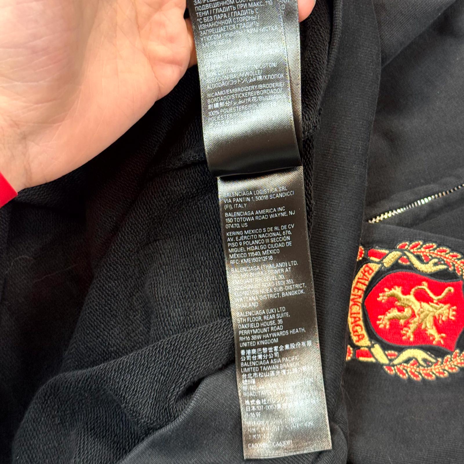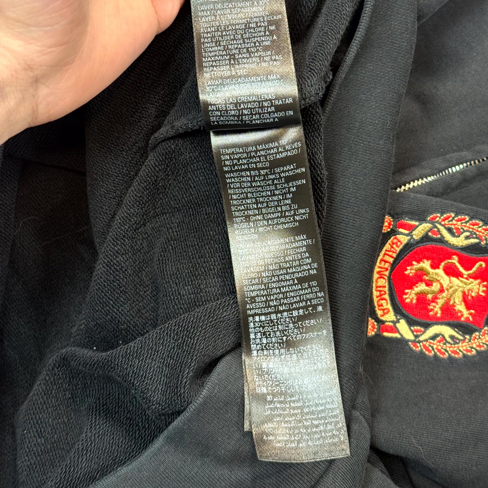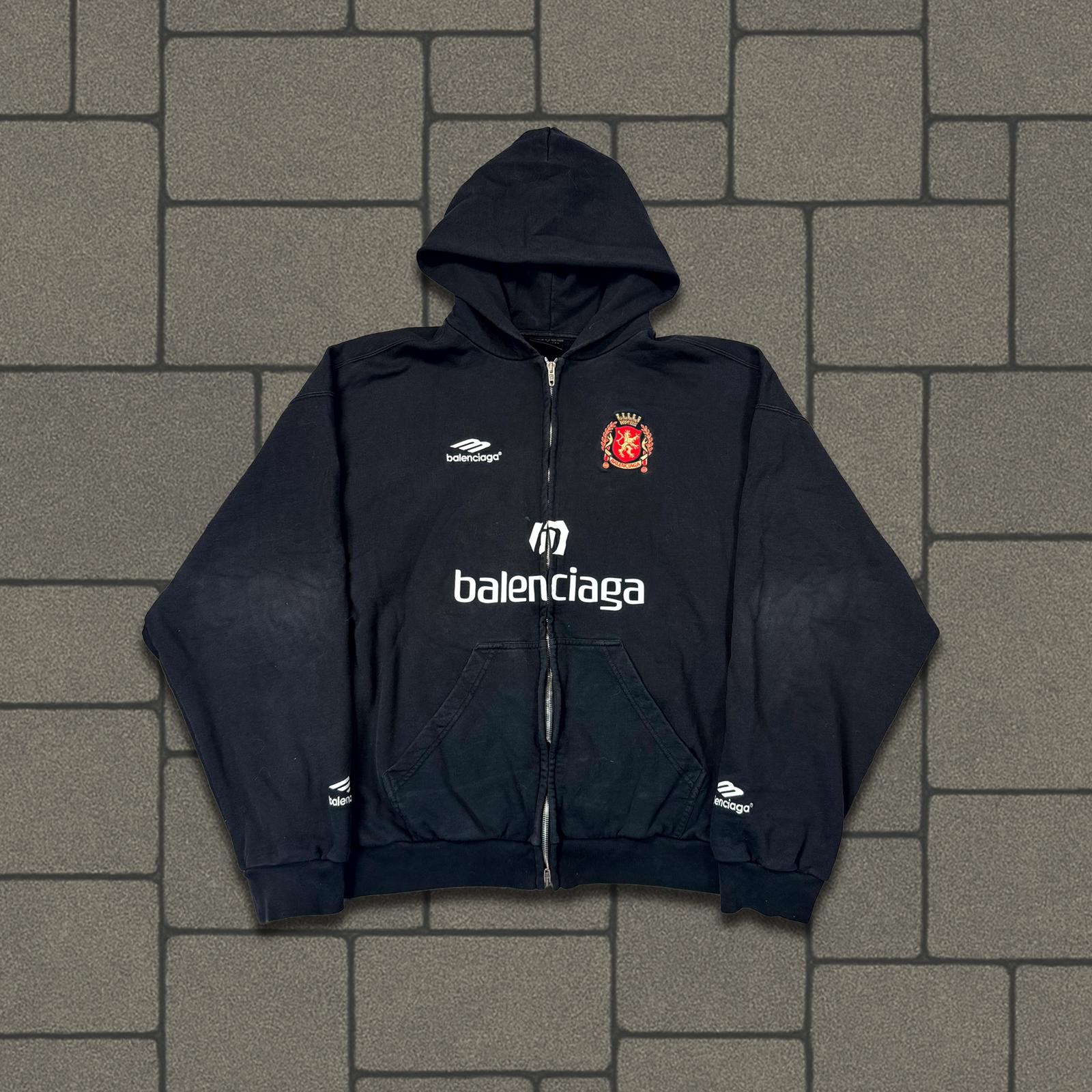 Demna’s tenure at Balenciaga, beginning in 2015, revolutionized the brand with its bold, boundary-pushing designs. Fusing high fashion with elements of streetwear, Demna embraced oversized silhouettes, deconstructed tailoring, and graphic-heavy pieces that challenged traditional notions of luxury. His work at Balenciaga is known for its satirical, often controversial commentary on consumerism and modern culture. Through his vision, Balenciaga became a symbol of progressive, avant-garde fashion that resonates with a global audience. This piece debuted in his Spring Summer 2024 collection. Many “Soccer” pieces were released in this collection including zip ups like this one with differing cities on the back for each store. This one is used, with general signs of wear and tear.