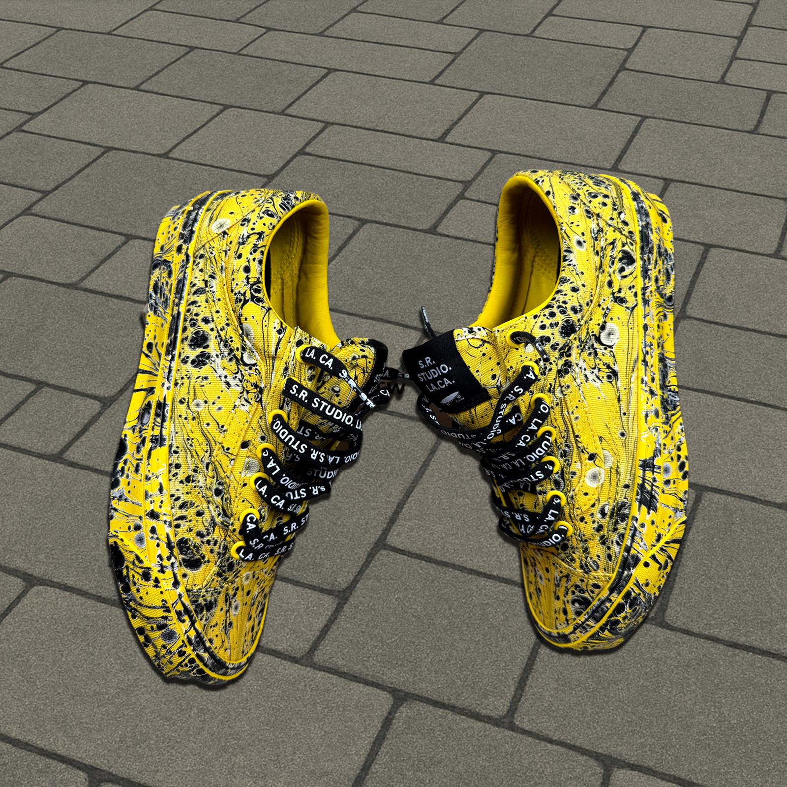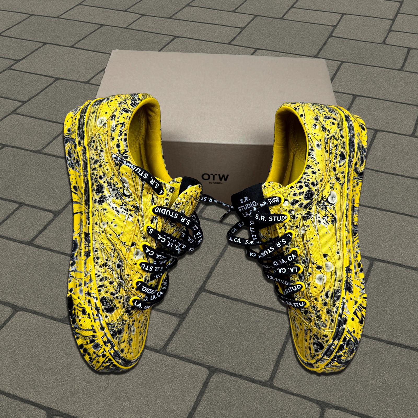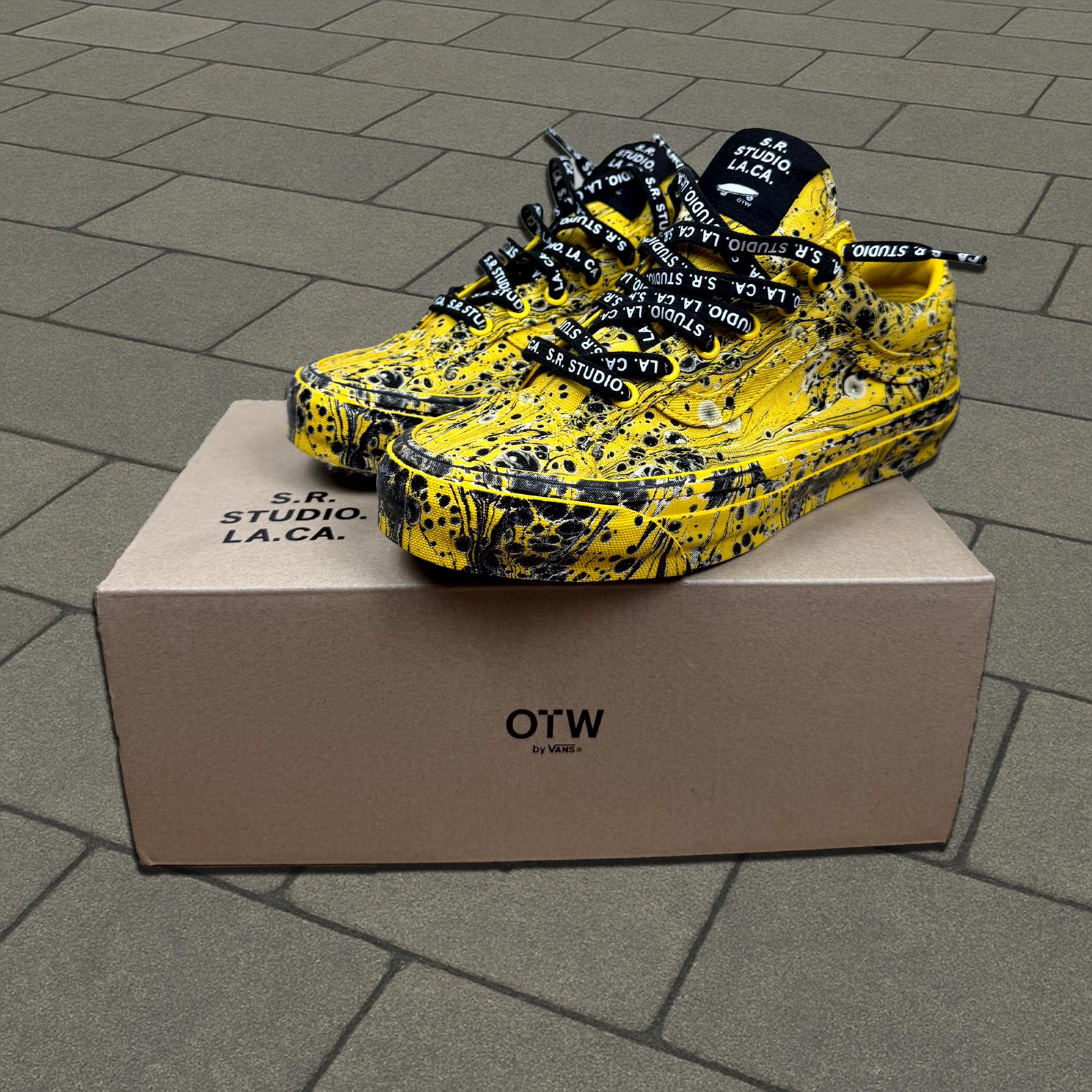 This recent collaboration from American artist sterling ruby and vans combines Sterling Ruby’s iconic marbled bleach splatter designs with the old skool 36’s vans is known so well for. Brand new with box and all accessories.